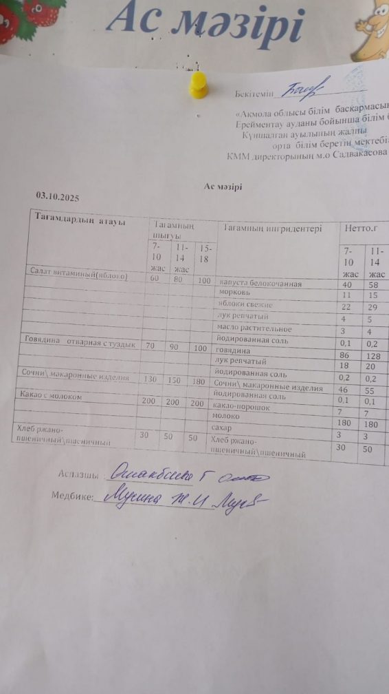 Ас мәзірі 03.10.2025