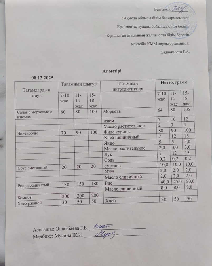 Ас мәзірі 08.12.2025
