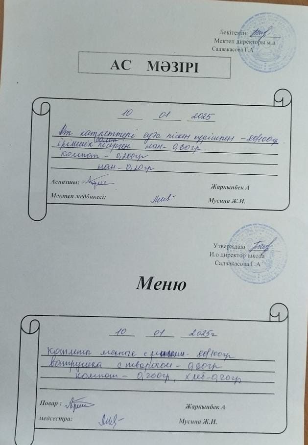 Ас мәзірі 10.01.2025
