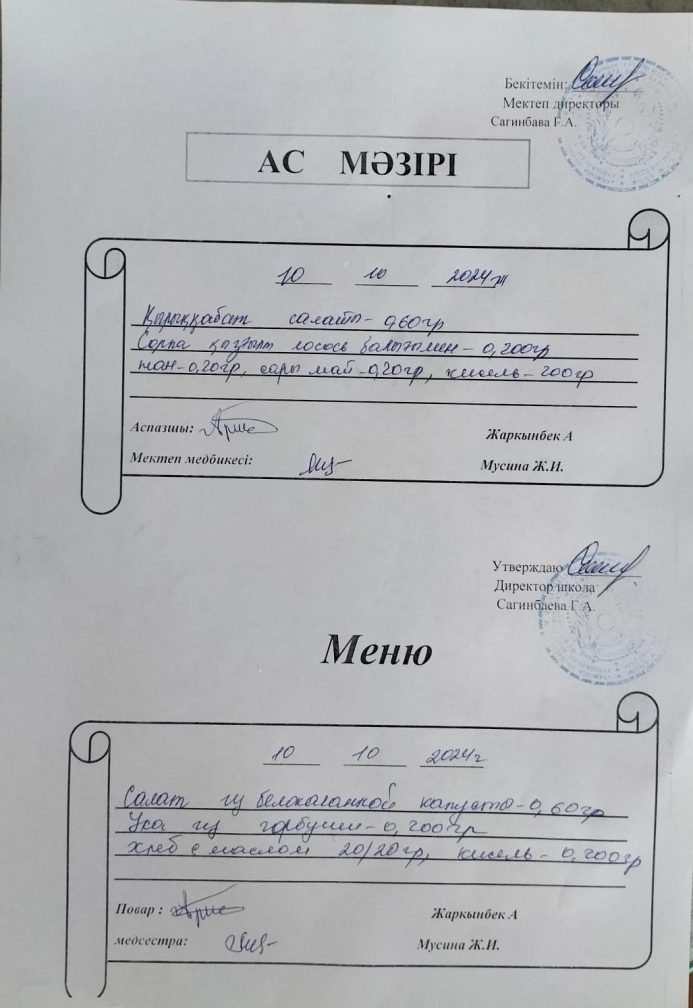 Ас мәзірі 10.10.2024