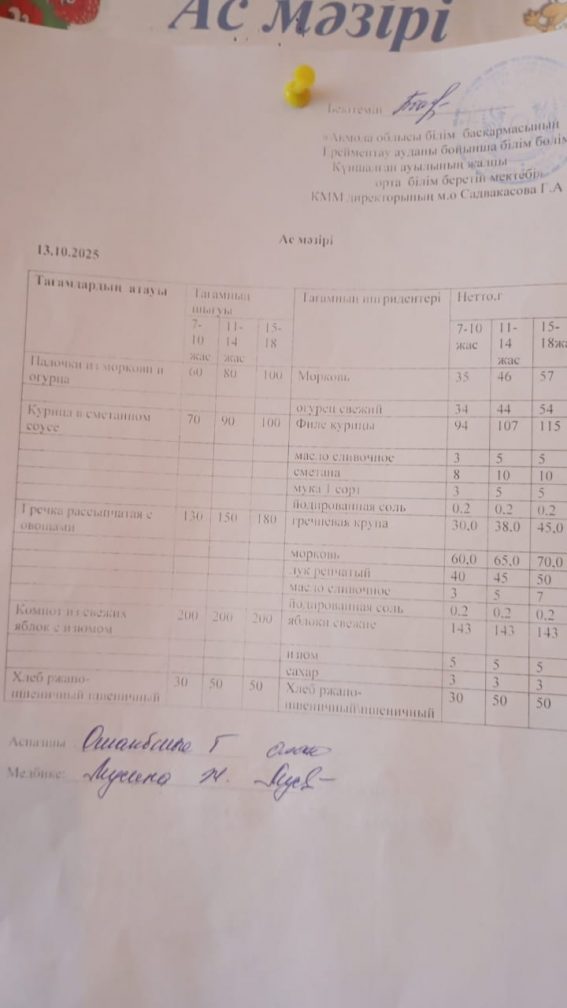 Ас мәзірі 13.10.2025