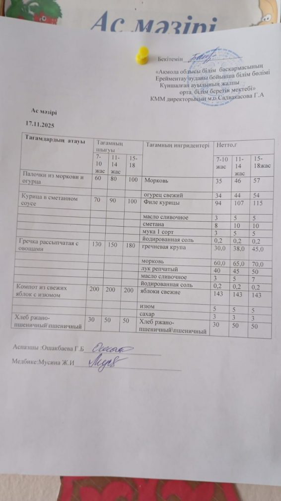 Ас мәзірі 17.11.2025