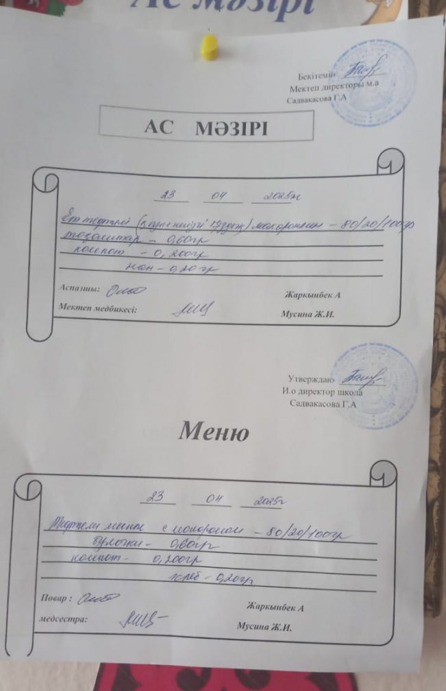 Ас мәзірі 23.04.2025