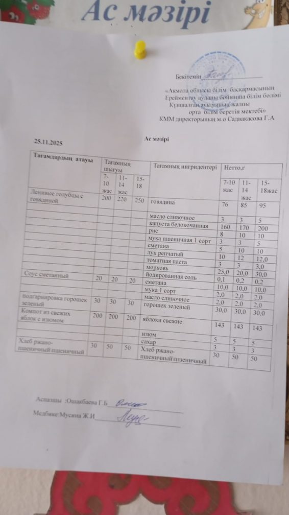 Ас мәзірі 25.11.2025