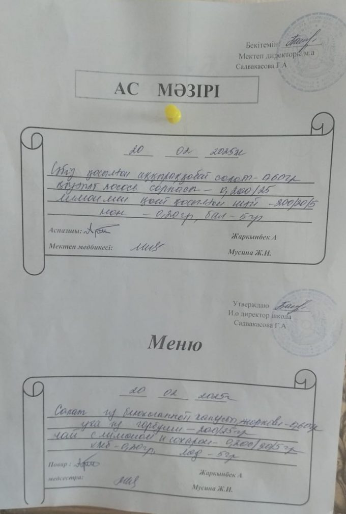 Ас мәзірі 20.02.2025